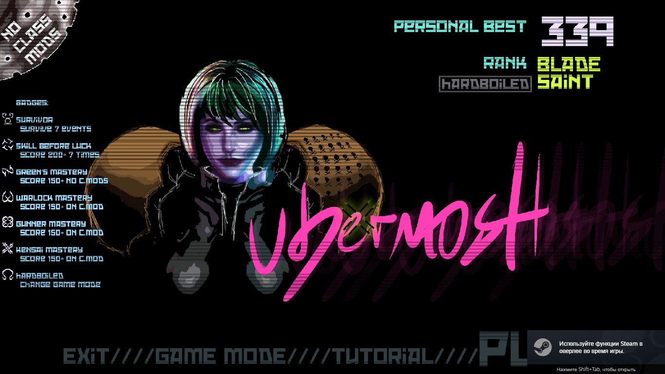 UBERMOSH is an arcade game about cutting bullets with a sword, in a gun-filled cyberpunk mosh pit.