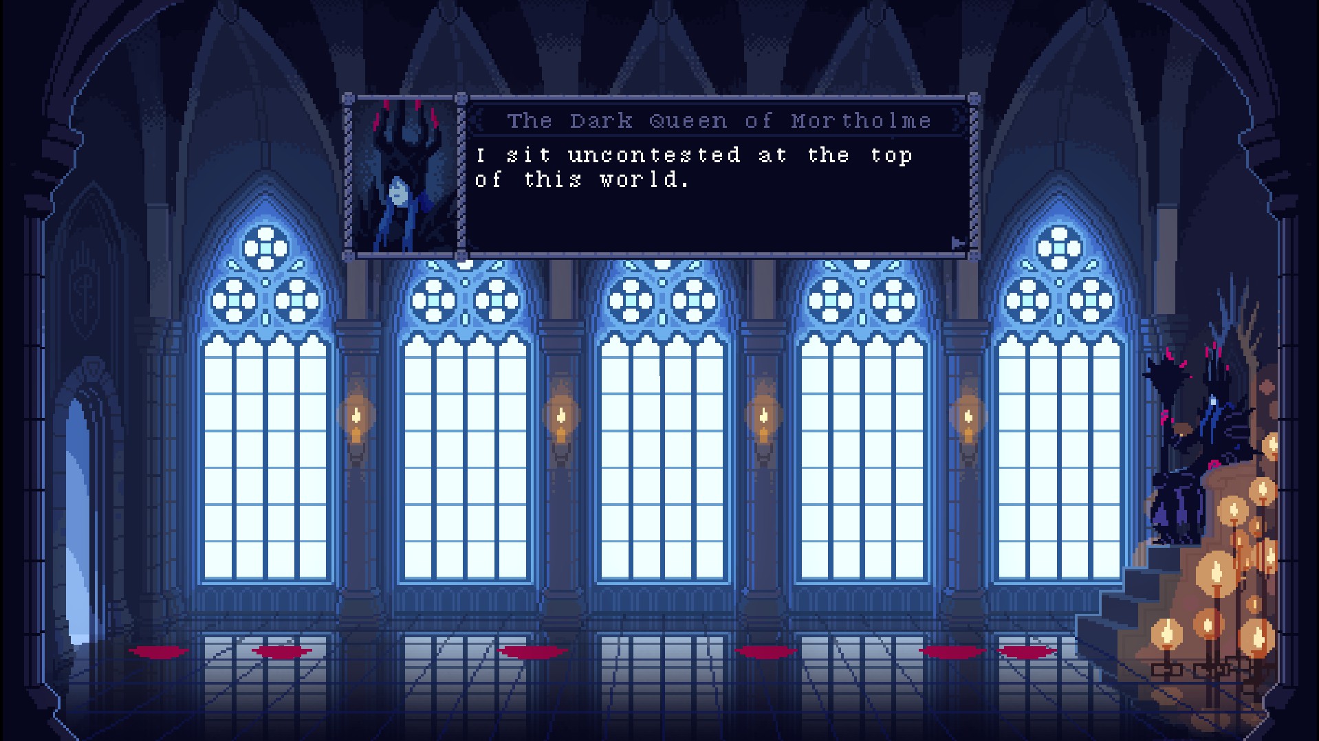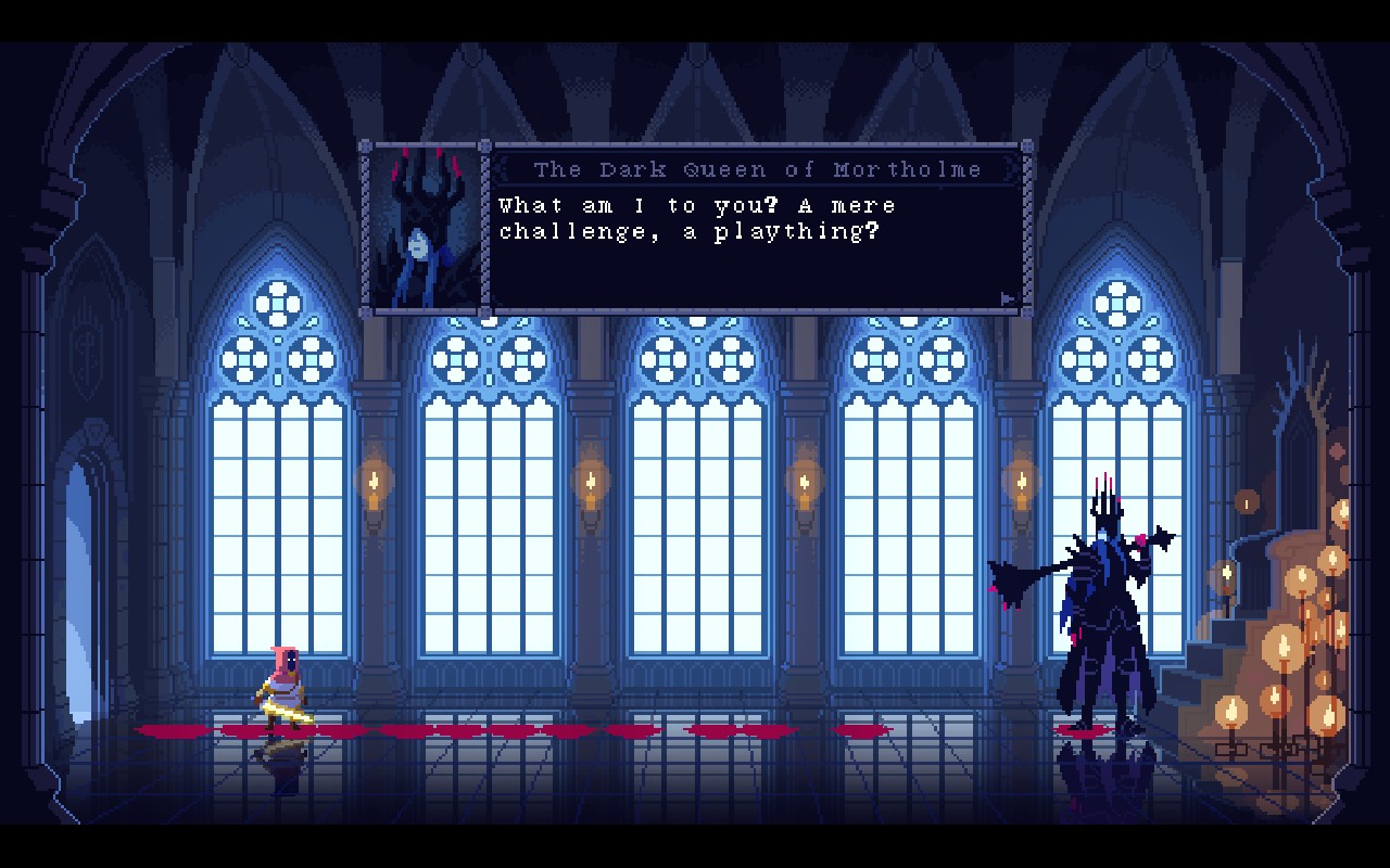 You are the final boss, the Dark Queen of Mortholme, unrivaled in power. A hero invades and is easily crushed. Yet, they keep returning. A short-form indie game about an unusual bond, perspectives, and the beauty of change.