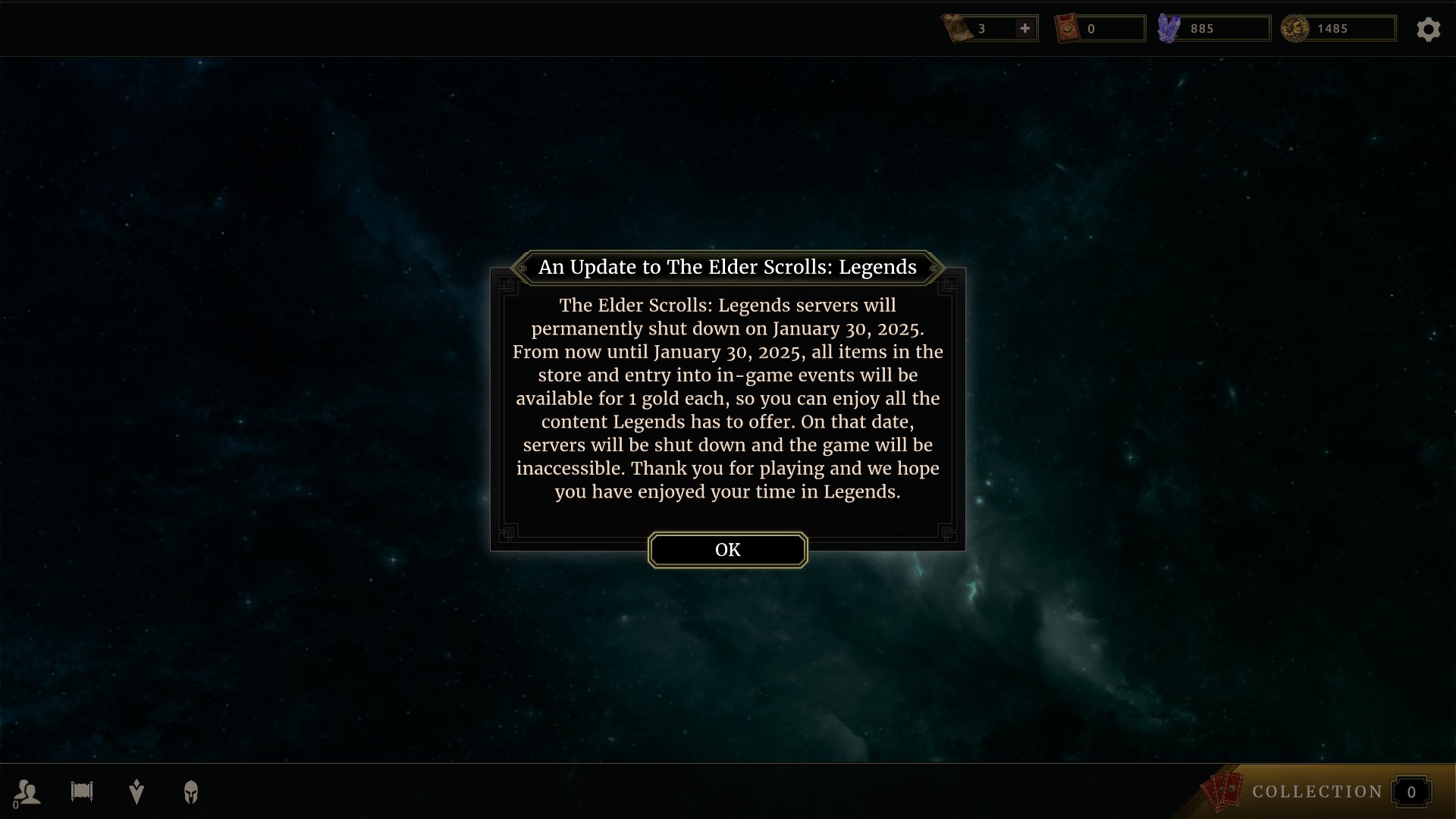 The Elder Scrolls: Legends™ is an award- winning free-to-play strategy card game based on the world and lore of the Elder Scrolls series. Play for hours or minutes across many game modes that are easy to learn but challenging to master.