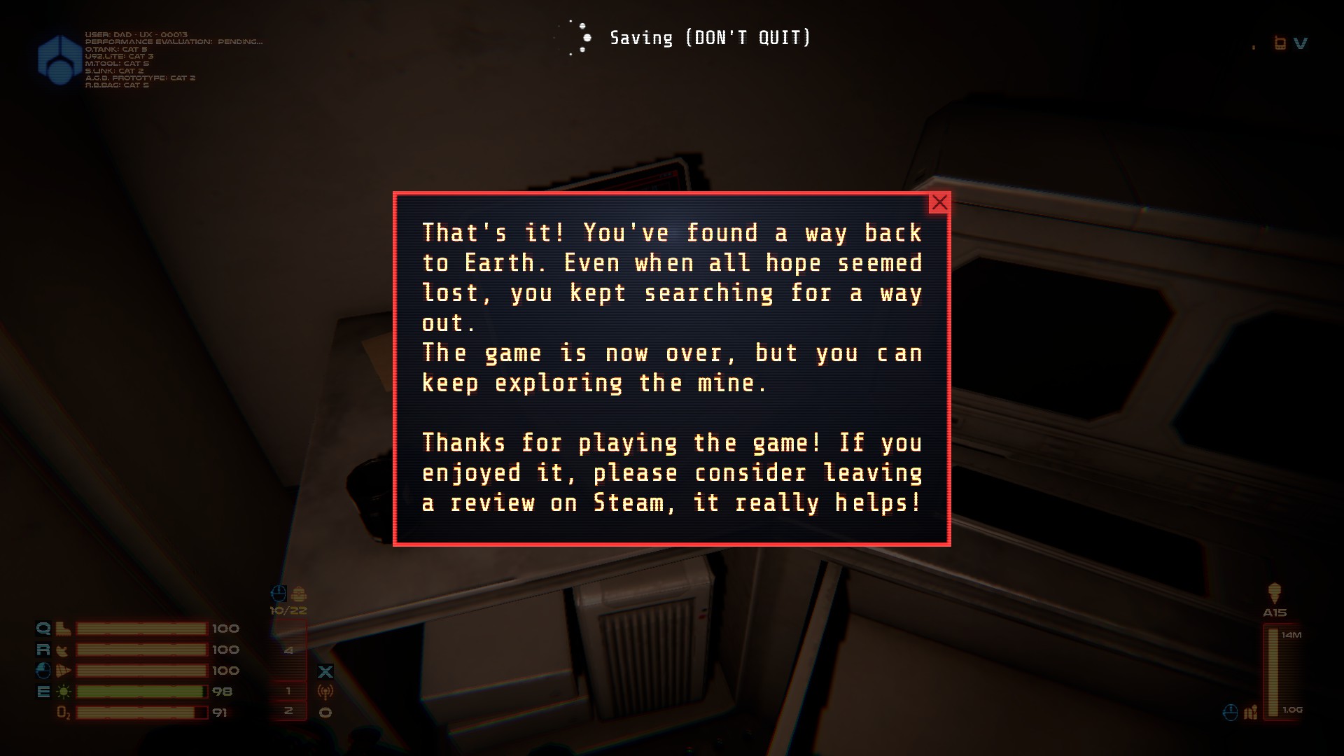 You've been trapped in a mine. You'll need to use your tools to dig your way to the exit in a fully destructible 3D voxel terrain. Manage your oxygen and equipment, and uncover the dark mystery buried deep within the mine.