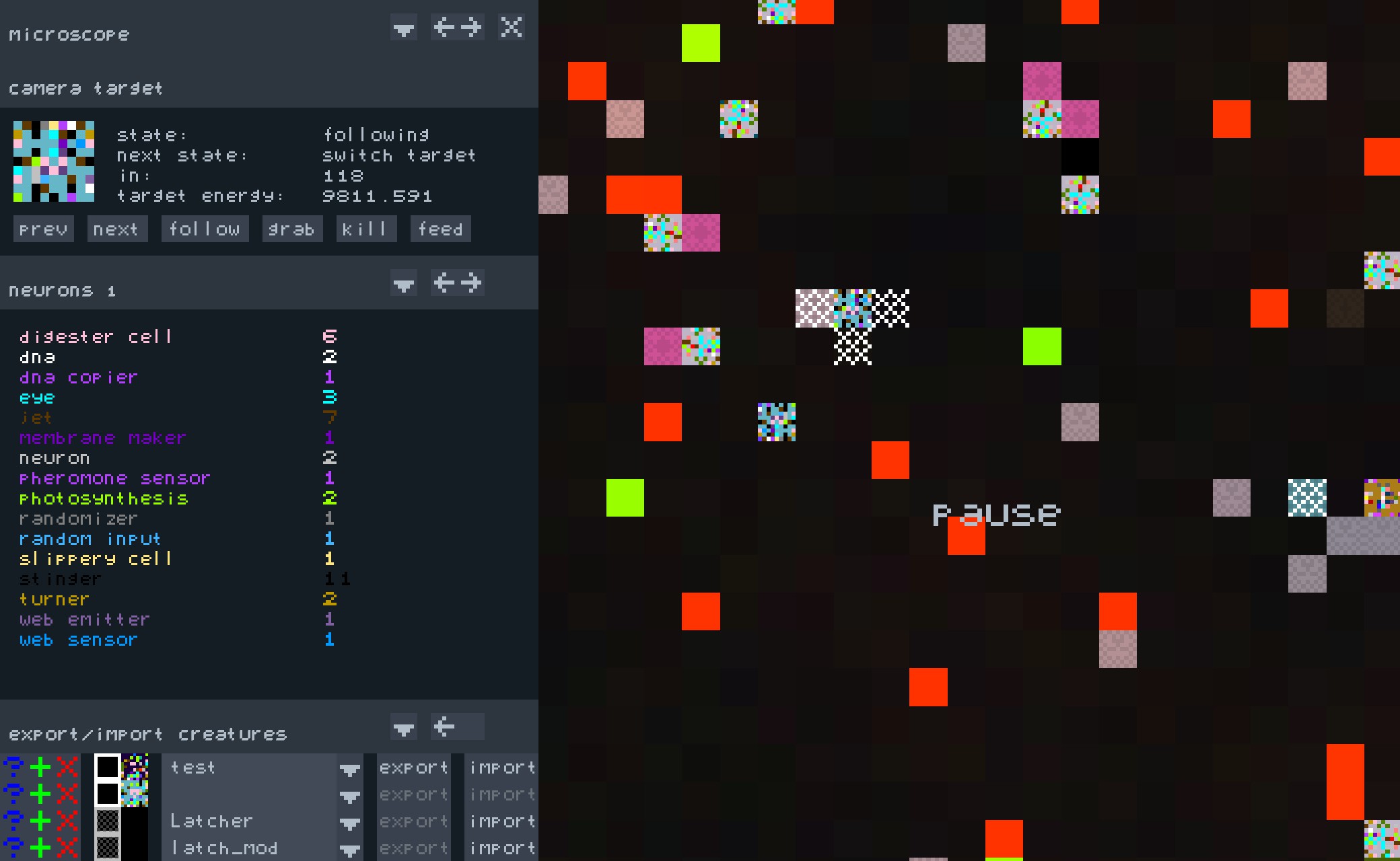 Gridworld is an artificial life and evolution simulator. Watch creatures evolve through natural selection as they learn to find food, avoid danger, and compete with other creatures for survival.