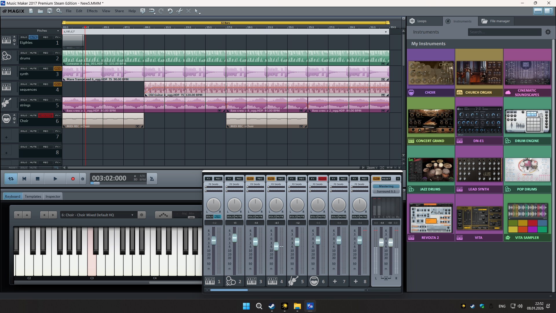 Music Maker Premium Steam Edition is a unique virtual studio with 8,000 included sounds, intuitive drag & drop controls, 12 instruments and high-quality pro features for mixing & mastering.