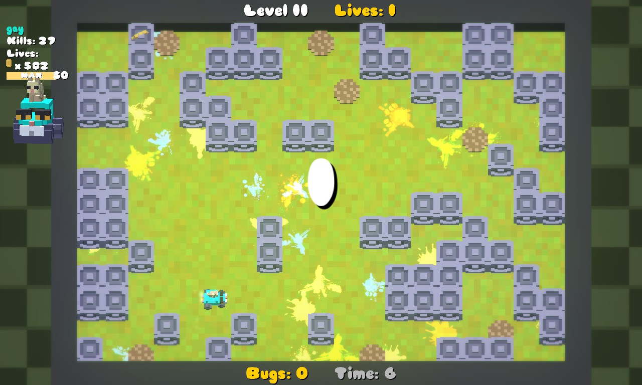 Oh No! Bugs! Is a casual arcade game where you squash bugs by pushing blocks. Play solo or with friends, locally or online!