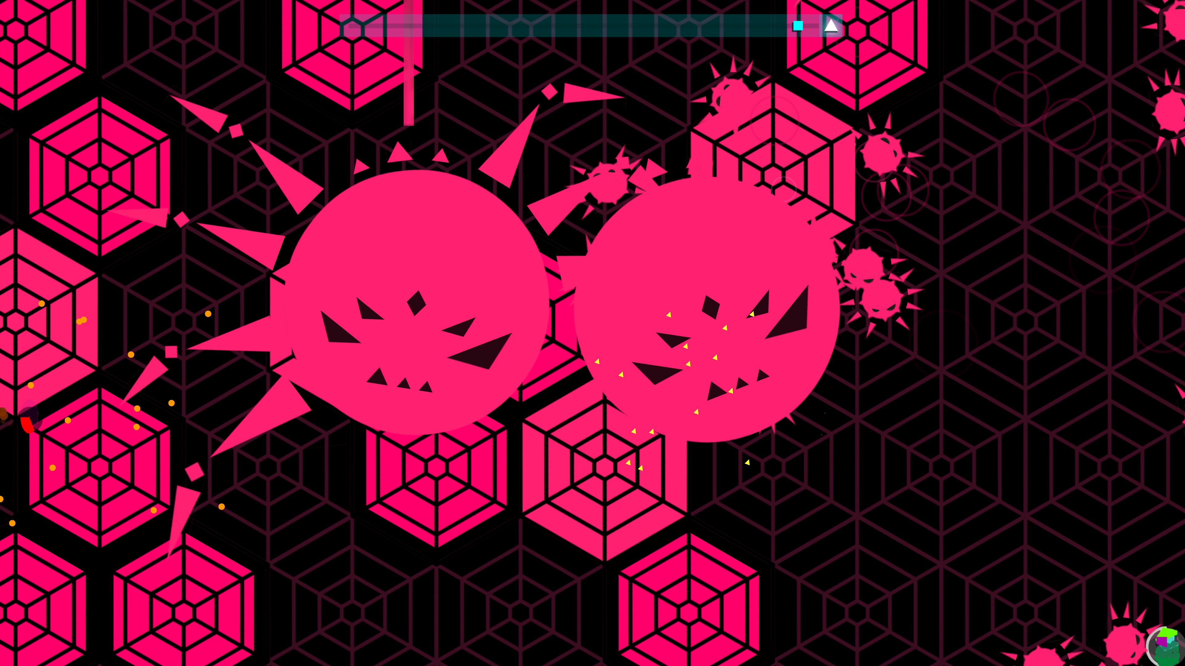 Just Shapes & Beats 是一款可多人合作的音乐类子弹地狱游戏,它具有混乱而炫目的场景。它的一切仅仅基于三个简单的事情:避开几何图形,随着节奏移动,不断地死亡重生。