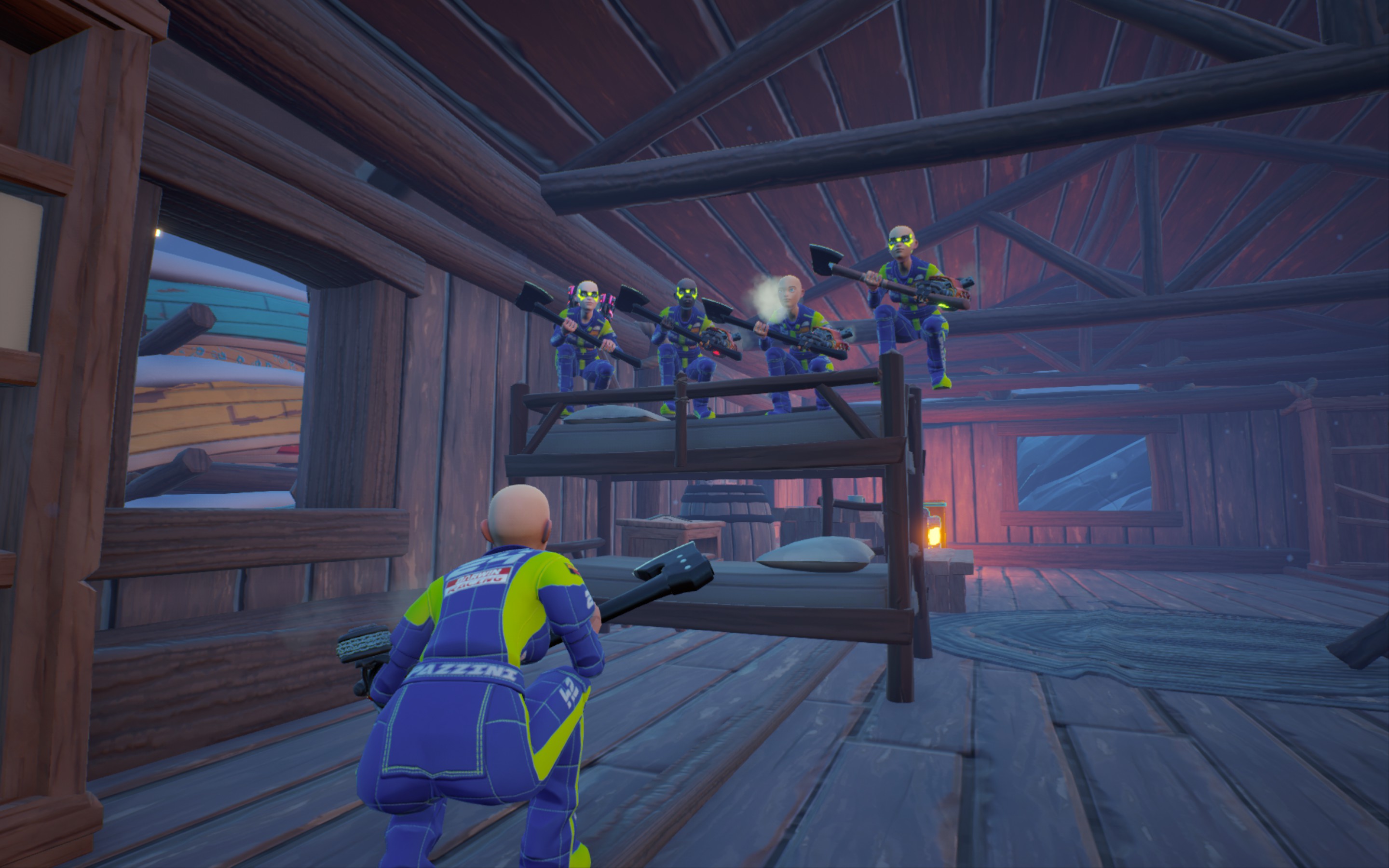 In Darwin Project, ten inmates must survive the elements, track each other, fight, craft tools, and use their social skills to be the last one standing. It's a unique take on battle royale with a Show Director to influence the match and Spectator Interactions to create a one-of-a-kind game show.