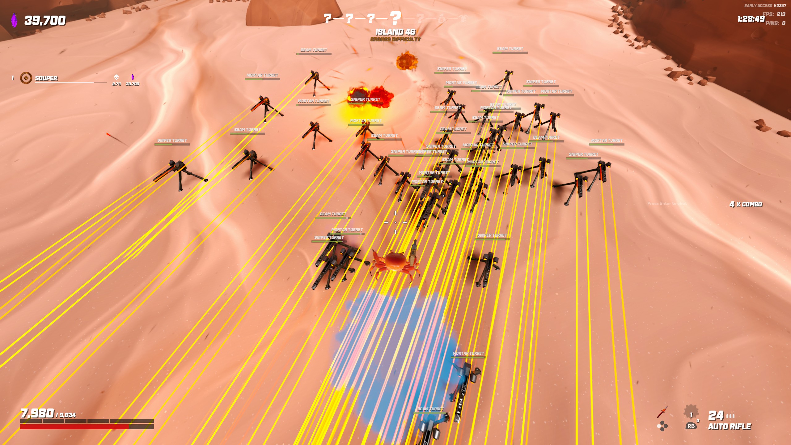 Claw your way across exotic islands combining fluid movement with fast paced combat to become a Crab Champion in this third person roguelike shooter.