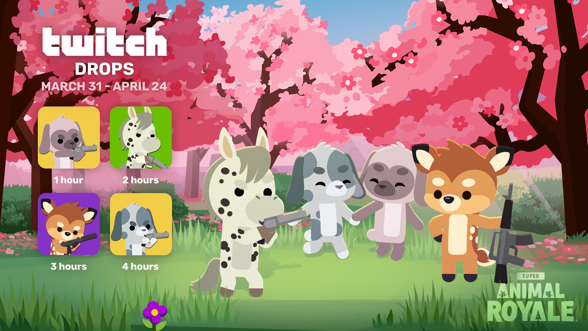 Spring has sprung, and four new Super Animal breeds are hopping out of SAW Labs and onto Twitch Drops. Support Super Animal Royale streamers and earn them for yourself by linking your Super Animal and Twitch accounts on the SAR Drops website