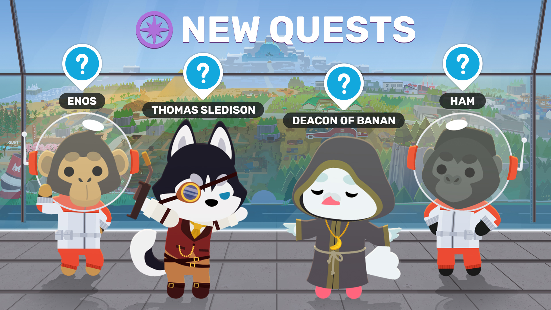 Embark on new NPC storylines and quests by talking to Ham & Enos, Thomas Sledison, and the Deacon of Banan. Whether you’re helping a would-be space society win official recognition, testing Sledison’s latest experiments, or uncovering the mysteries of Banananite itself, there’s plenty to dig into.