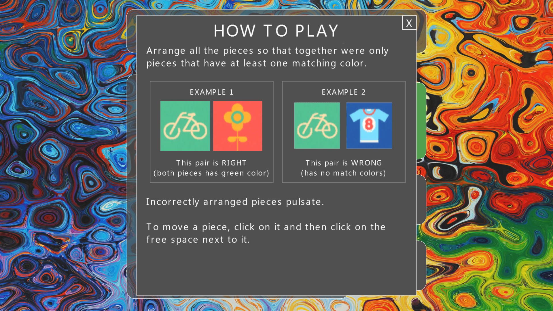 The original puzzle in which you need to arrange harmoniously the color pictures