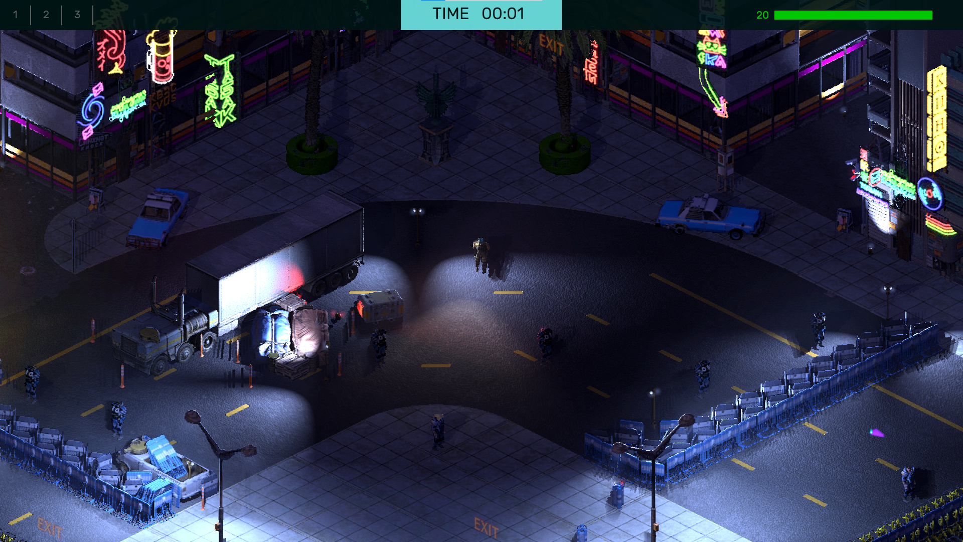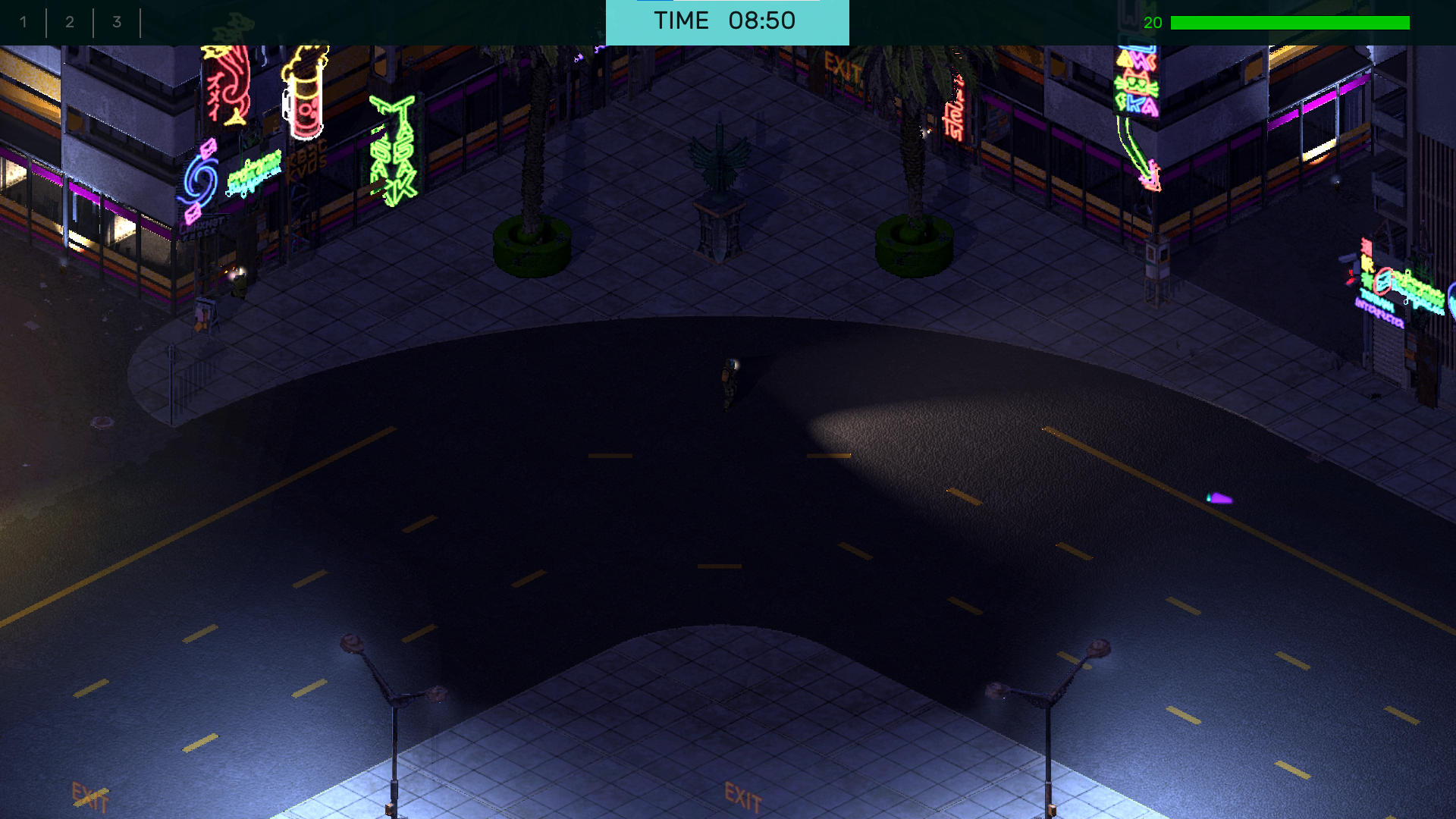 Placed on the map are two blue icons and a purple icon, which are the spawn locations of the boxes mentioned earlier. The blue boxes contain parts, which are used in the Fabricator back at the garage. Meanwhile the purple box contains ammo. Other box types exist, but more on that later.