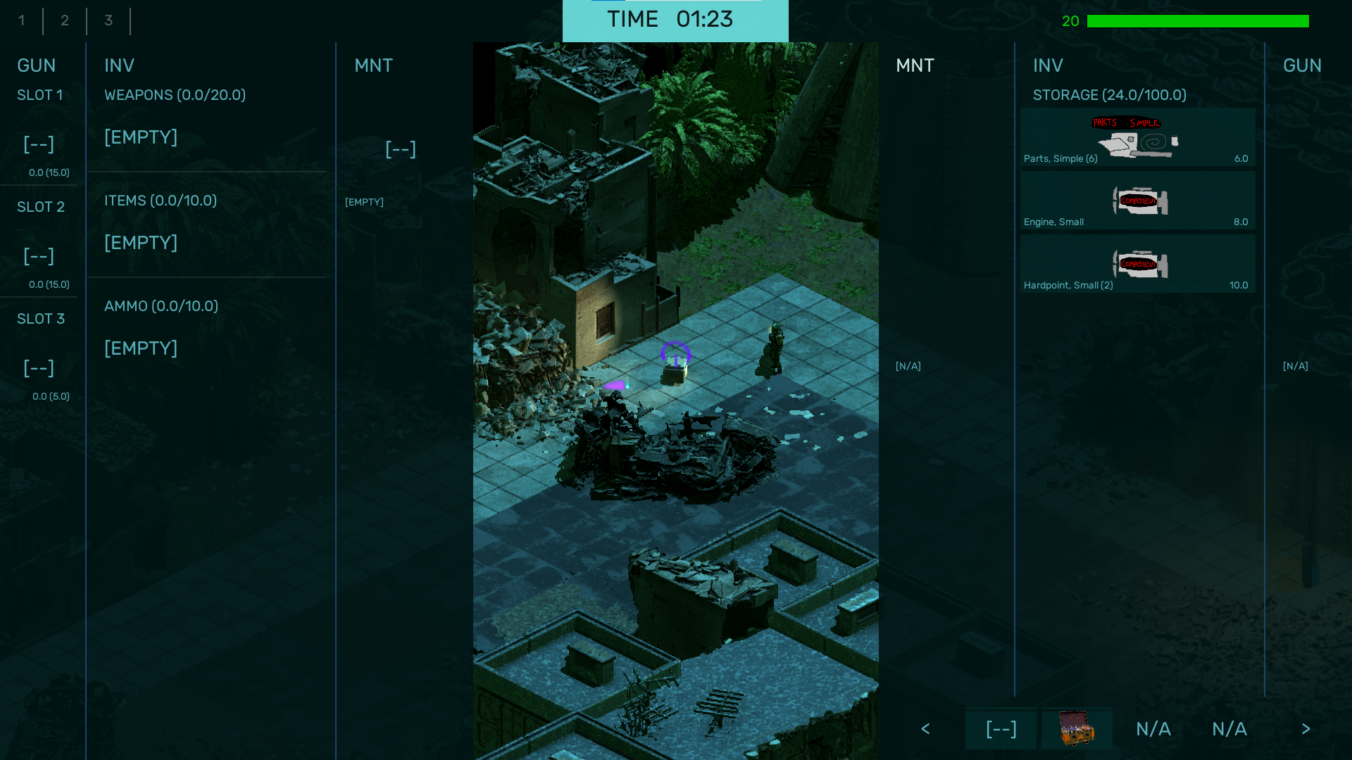 Now, because there is now a penalty to the player dying in the recent build, the intention behind Crow's Field is that the player can always go into this level empty-handed to grab some low tier weapons, ammunition and parts for the garage with little to no risk.