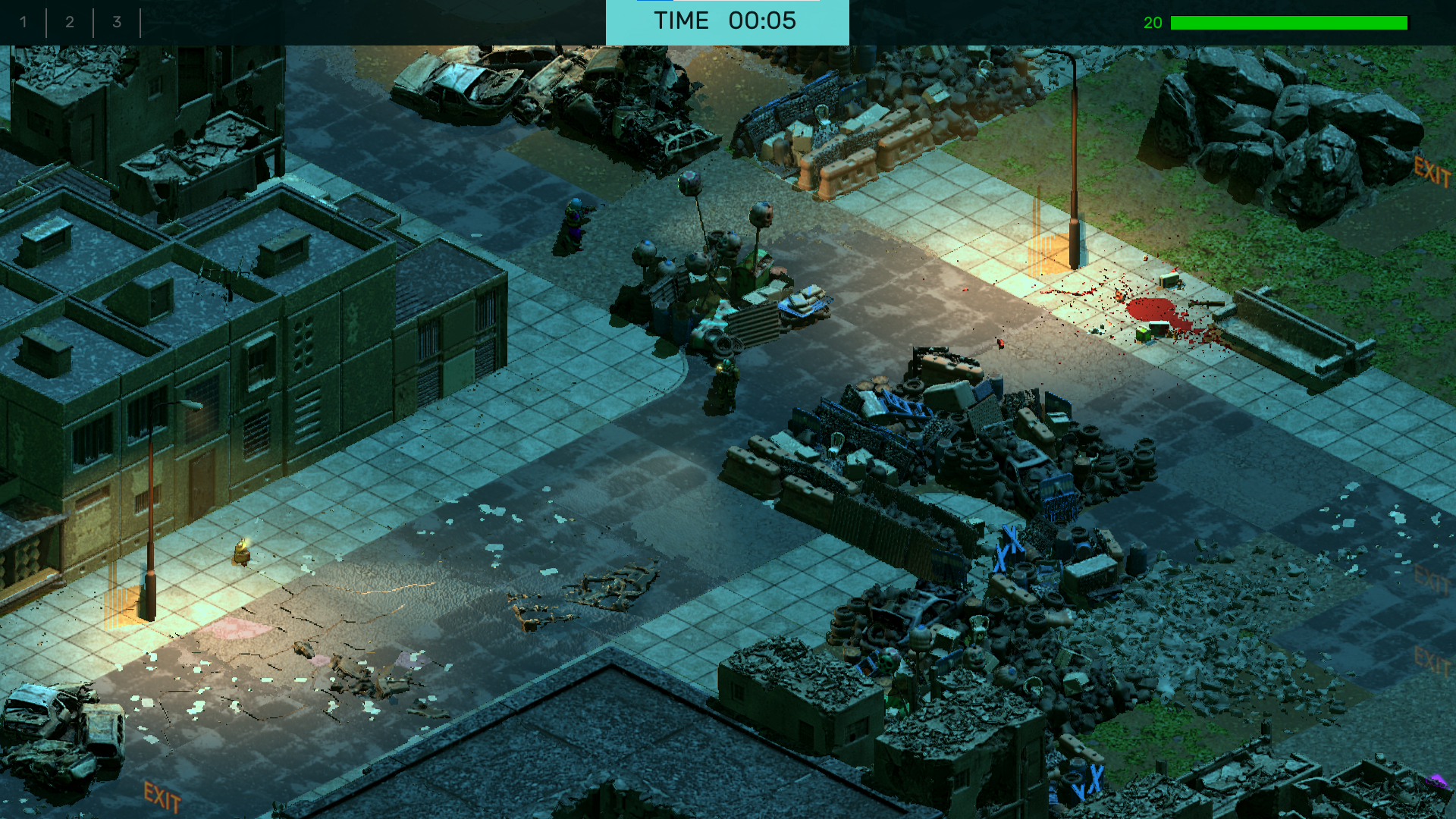 Or that same police blockade but the large crate is gone and instead it's strewn with corpses and there are now Corvids about.