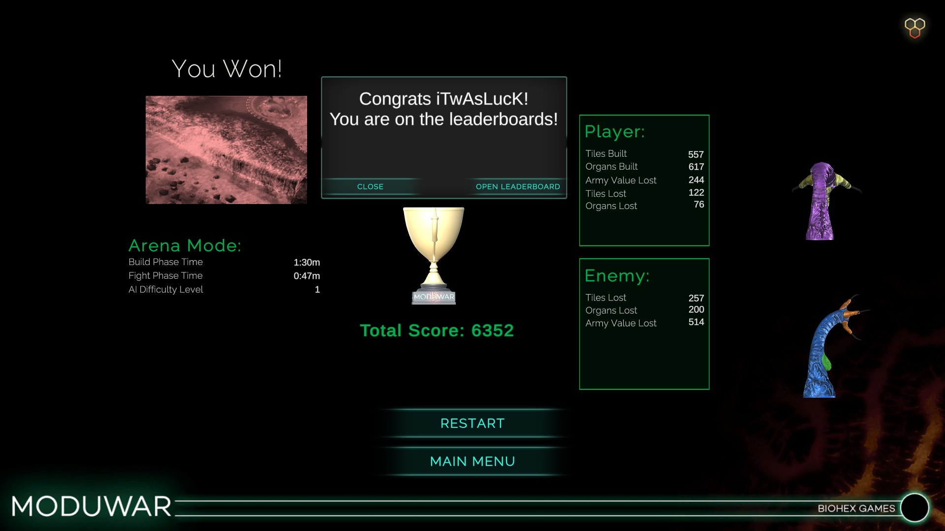 Moduwar 是一款适应性生物 RTS 游戏。你将操控一种名为 Modu 的外星生物,你的身体就是你的军队。游戏分为单人模式和多人模式,玩家可以长出新器官,分裂和合并器官,还可以将器官变异成各种适应你需求的独特单位,以对抗人类和外星威胁。