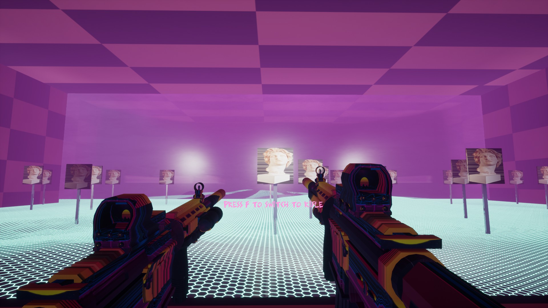 Aesthetic World is a vaporwave simulator. Enter paradise and walk, bounce, drive or shoot your way around this environment of aesthetic bliss...