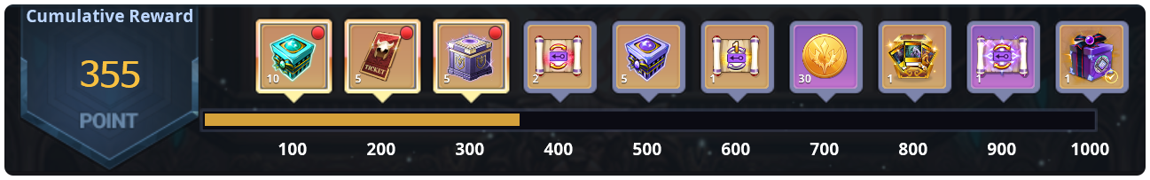 - Once enough points are accumulated, [Accumulated Point Rewards] become available. Click the activated reward icon to claim rewards.