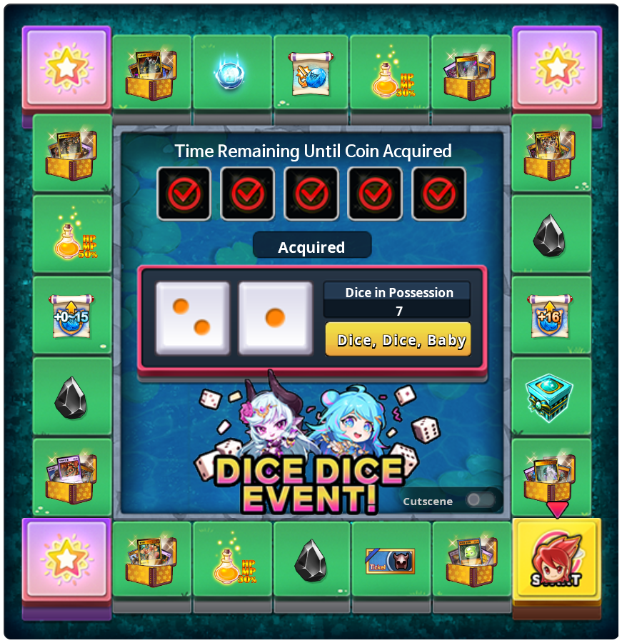 - Acquired [Lucky Dice Coin] will be immediately updated to the Dice Game Board. (The item will not be stored in the inventory.)