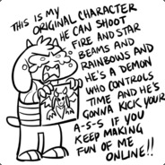 THIS IS MY ORIGINAL CHARACTER HE CAN SHOOT FIRE AND STAR BEAMS AND RAINBOWS AND HE'S A DEMON WHO CONTROLS TIME AND HE'S GONNA KICK YOUR A-S-S IF YOU KEEP MAKING FUN OF ME ONLINE!!