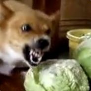 dog is angry about cabbage