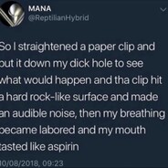 So I straightened a paper clip and put it down my ♥♥♥♥♥♥♥♥♥ to see what would happen and tha clip hit a hard rock-Iike surface and made an audible noise, then my breathing became labored and my mouth tasted Iike aspirin