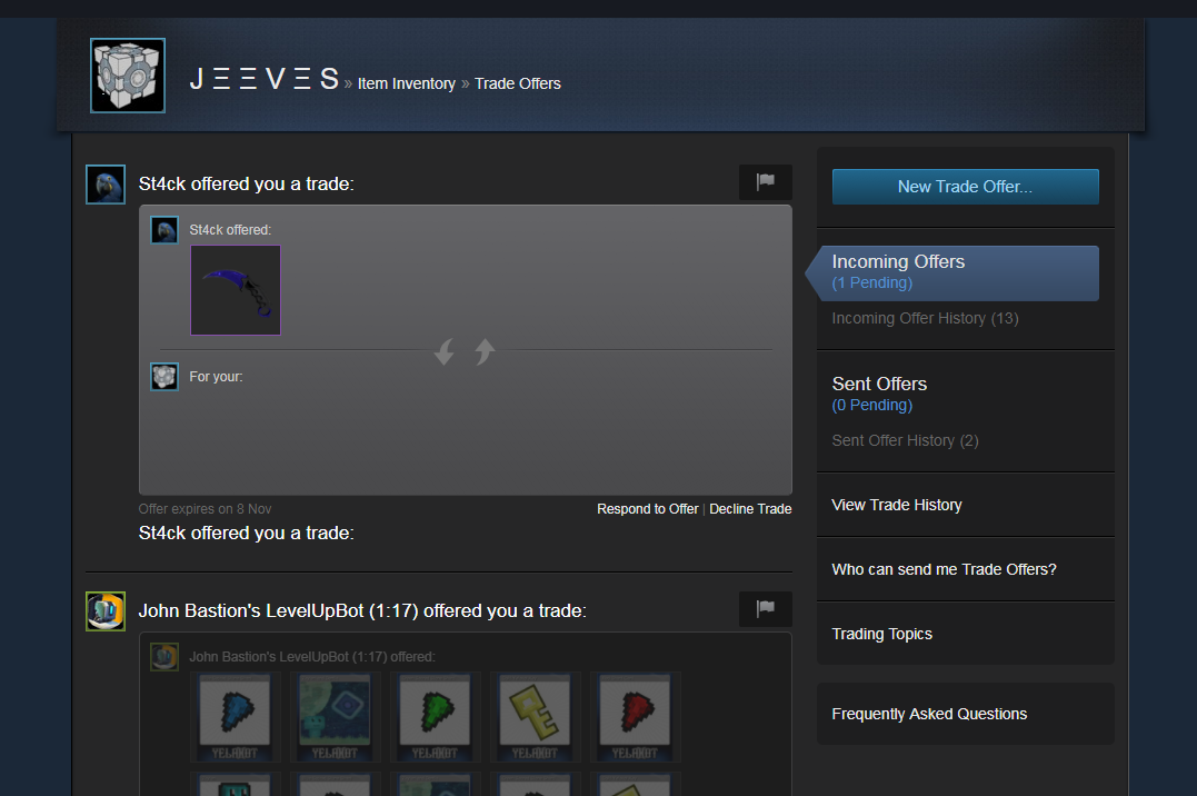 Only will accept trades in my favour unless I offer them. This doesn't include key buyouts and items included in the "Up for trade" section.