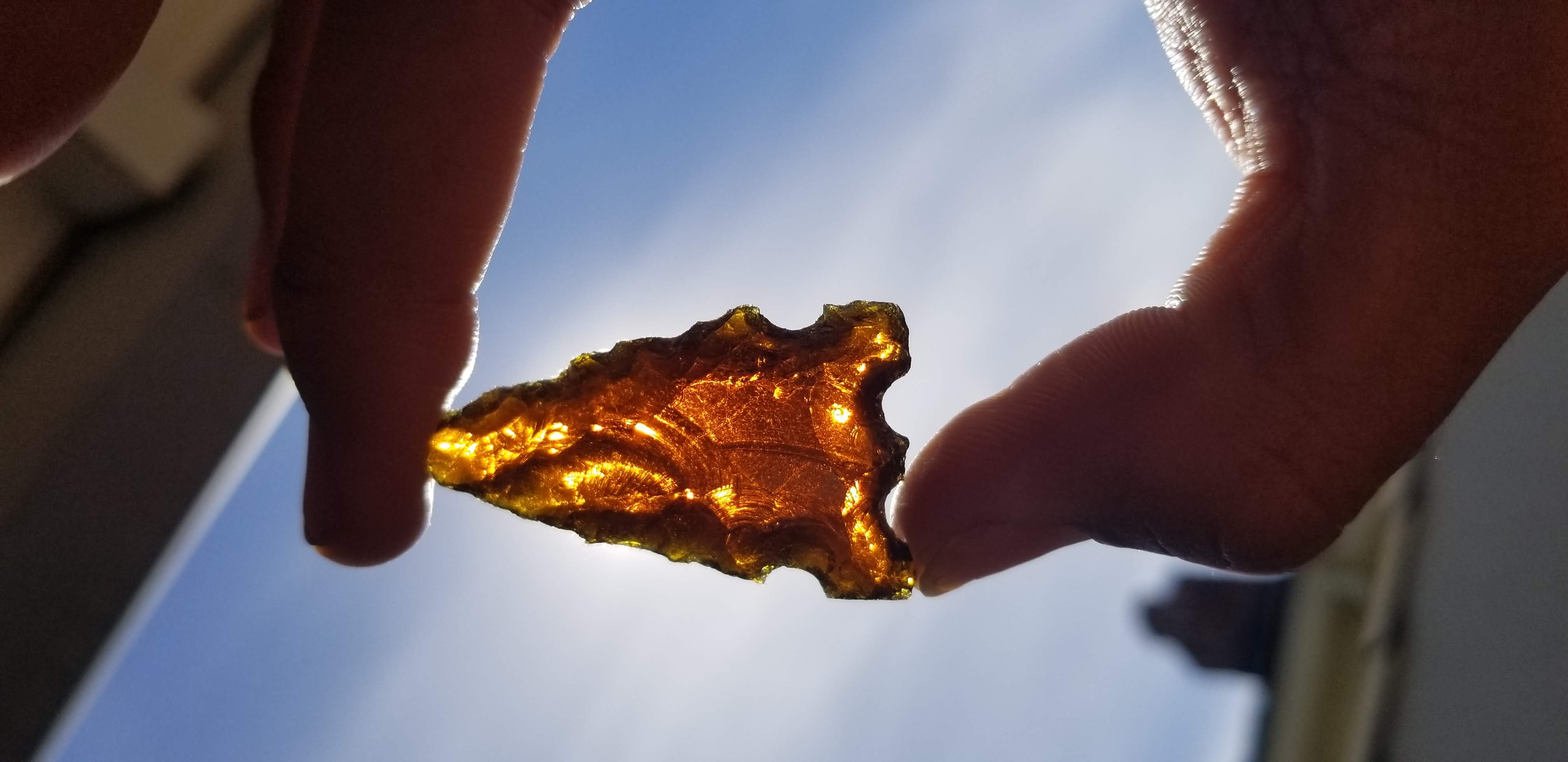 Glass arrowhead flintknapping