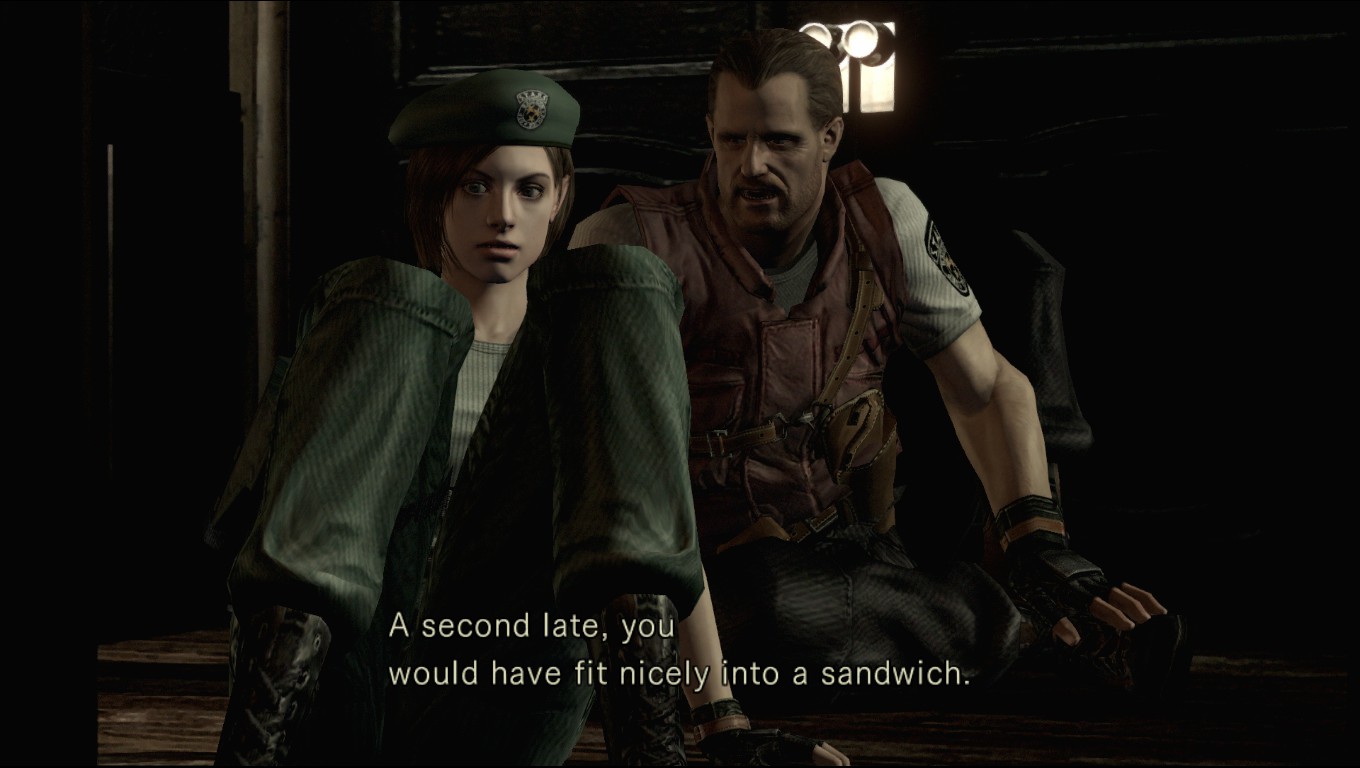 "Barry: That was too close. You were almost a Jill sandwich." Eles mudaram a frase mais famosa do jogo.