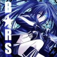 Black Rock Shooter, known as BRS or Rock for short, is the eponymous character of the franchise. She is depicted with her hair in two pigtails, one longer than the other, and she has two scars on her torso and her hip. Her left eye burns with a bright blue flame. She wears a pair of knee high black boots, a black bikini top, black short shorts with a light gray belt, and a black hooded jacket with a long back with a white star on the back. She carries two weapons, a rock cannon that can fire rapid shots or more powerful charge shots, and a crooked katana.