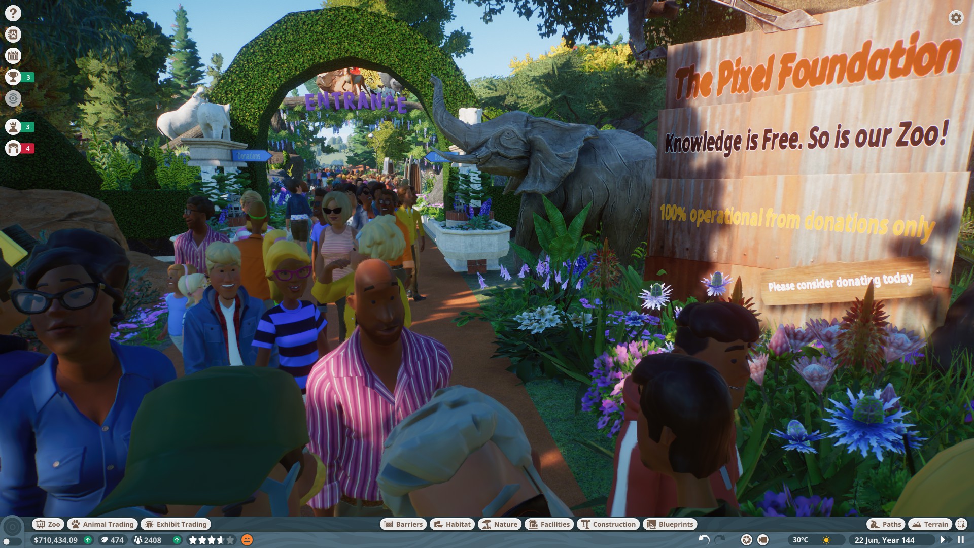 Amazing game. From ticket prices, to soda prices, to burger prices. Charging for Ketchup, to charging for Audio Informational packets; You are in control of your Zoo.