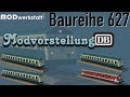 Diesel rail car class 627 of Deutsche Bundesbahn and Deutschen Bahn AG in all existing liveries. As "little brother" of class 628 this railcar was only once coach. Like the 628 they have been delivered with Scharfenberg coupling and later redone to standard buffer. In the year of 1981 there have been produced 5 vehicles more with slight changes and being numbered as sub-class 627.1.