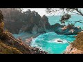 TAGS: beach, waves, cove, sunny, sunshine, aqua, nature, outdoors, coast, shore, day, rocky, landscape, trees, chill, relaxing, mellow