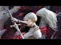 white hair, sword, armor, tree, trees, petal, petals, leaf, leaves, blue eyes, fantasy girls, females, fantasy art, fanart, fan art, artwork