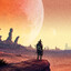 Punto de vista desde la roca con la segunda figura morada.