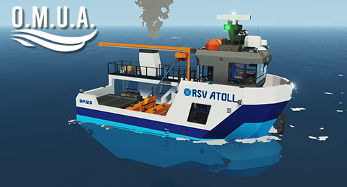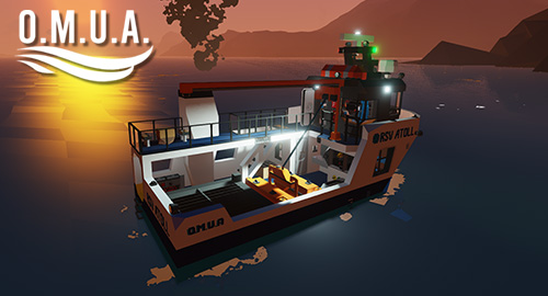 The R.S.V Atoll is the fastest 40-ft vessel of OMUA's (Oceanic Marine Underwater Agency) Fishery Division. Launched in 2024 after an expedited 7-months of R&D by OMUA, the sleek Atoll reaches speeds of 50 knots while allowing the deployment of an expandable fishing net. Designed to sample and study fish health, the Atoll also features a large hopper system for collecting fish, as well as the standard technology, including multibeam sonar, 2 radar systems, an advanced autopilot and more. The boat is outfitted with a bridge, crew level with a research area, small lounge and cabin. Intended for small crews and short trips, the Atoll is manned a standard operations crew of 2 and up to 3 other staff. As with all OMUA vessels, all systems are designed to be operated by a 1-man crew, in case of emergencies.