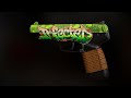 The Five-SeveN | Infected combines toxic elegance with gritty detail. A radioactive green flow spreads across the top of the weapon, resembling a hazardous biological leak. The side is marked with a bold graffiti tag reading Infected, while the rest of the pistol is coated in sleek black. To complete the look, the grip is wrapped with a rough leather-like texture, giving the weapon a raw and improvised survivalist vibe.