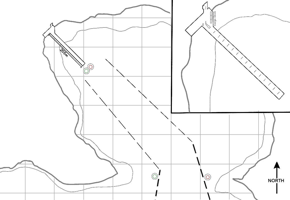 There are also bouys included to guide your way into the bay, and to the end of the dock. Please use the image below to guide your aproach.