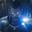 snow effect + glitch + glowing helmet