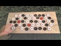 DVONN is played on an elongated hexagonal board, with 23 white, 23 black and 3 red DVONN-pieces. In the beginning the board is empty. The players place the pieces on empty spaces of the board, without restrictions. They place the DVONN-pieces first and their own pieces next. Then they start stacking pieces on top of each other. A single piece may be moved 1 space in any direction, a stack of two pieces may be moved two spaces, etc. A stack must always be moved as a whole and a move must always end on top of another piece or stack. If pieces or stacks lose contact with the DVONN-pieces, they must be removed from the board. The game ends when no more moves can be made. The players put the stacks they control on top of each other and the one with the highest stack is the winner.